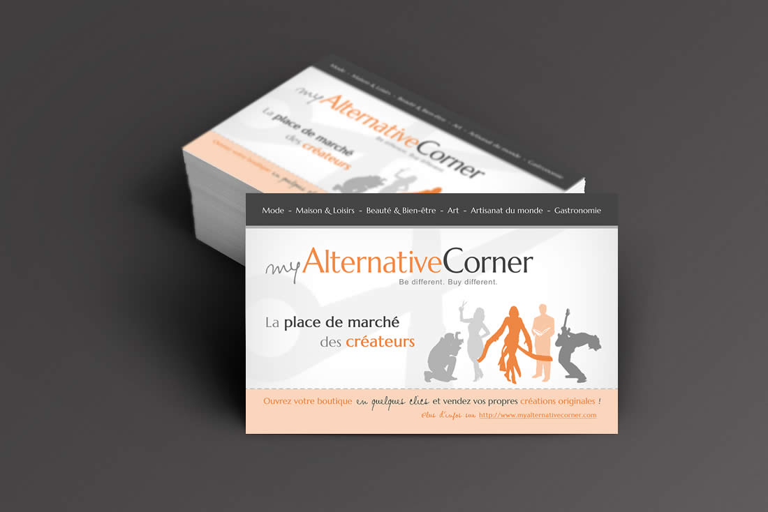 Pour MyAlternativeCorner, j’ai tout d’abord créé un thème sur mesure et un logo original. J’ai ensuite effectué un gros travail de développement afin de transformer la plateforme open-source Prestashop en place de marché et permettre ainsi aux internautes de créer et gérer leur propre boutique sur le site. J’ai enfin adapté et/ou développé de nombreux modules additionnelles et créé tous les visuels du site ainsi que les cartes de visite de MyAlternativeCorner.