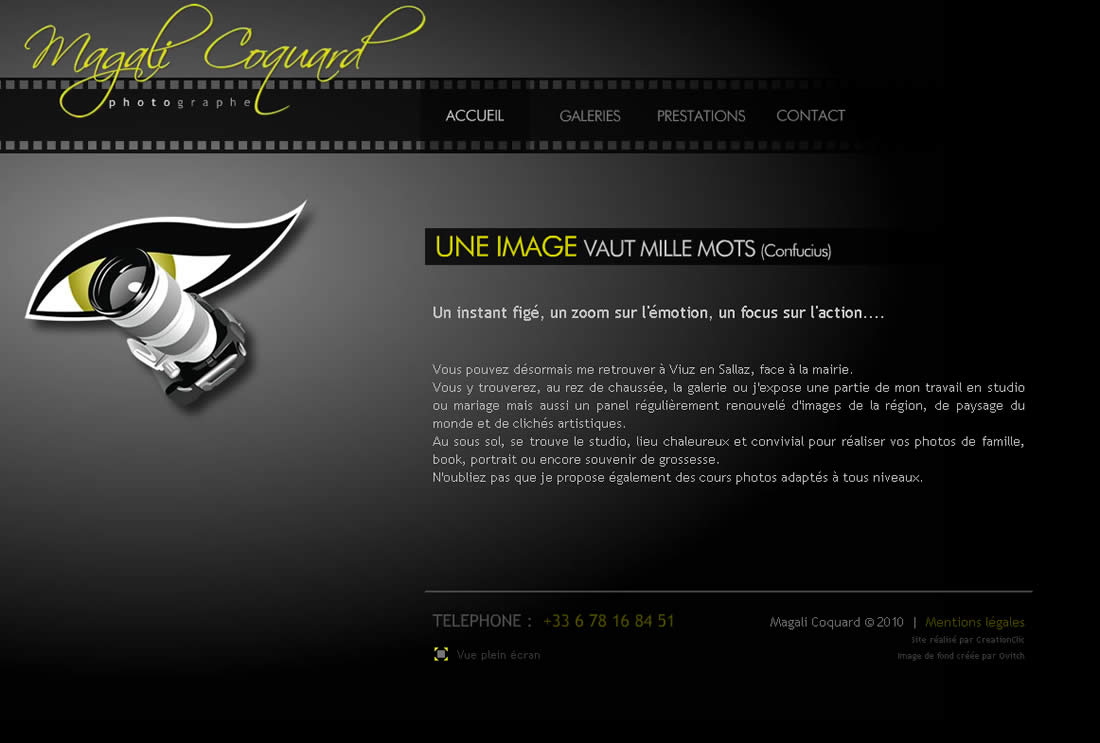 Pour son site, Magali souhaitait un portfolio en Flash lui permettant de présenter ses services et ses photos. Je me suis alors tourné vers une template de galerie photos en Flash, que j’ai personnalisée. Le site créé n’est malheureusement plus consultable sur Internet.