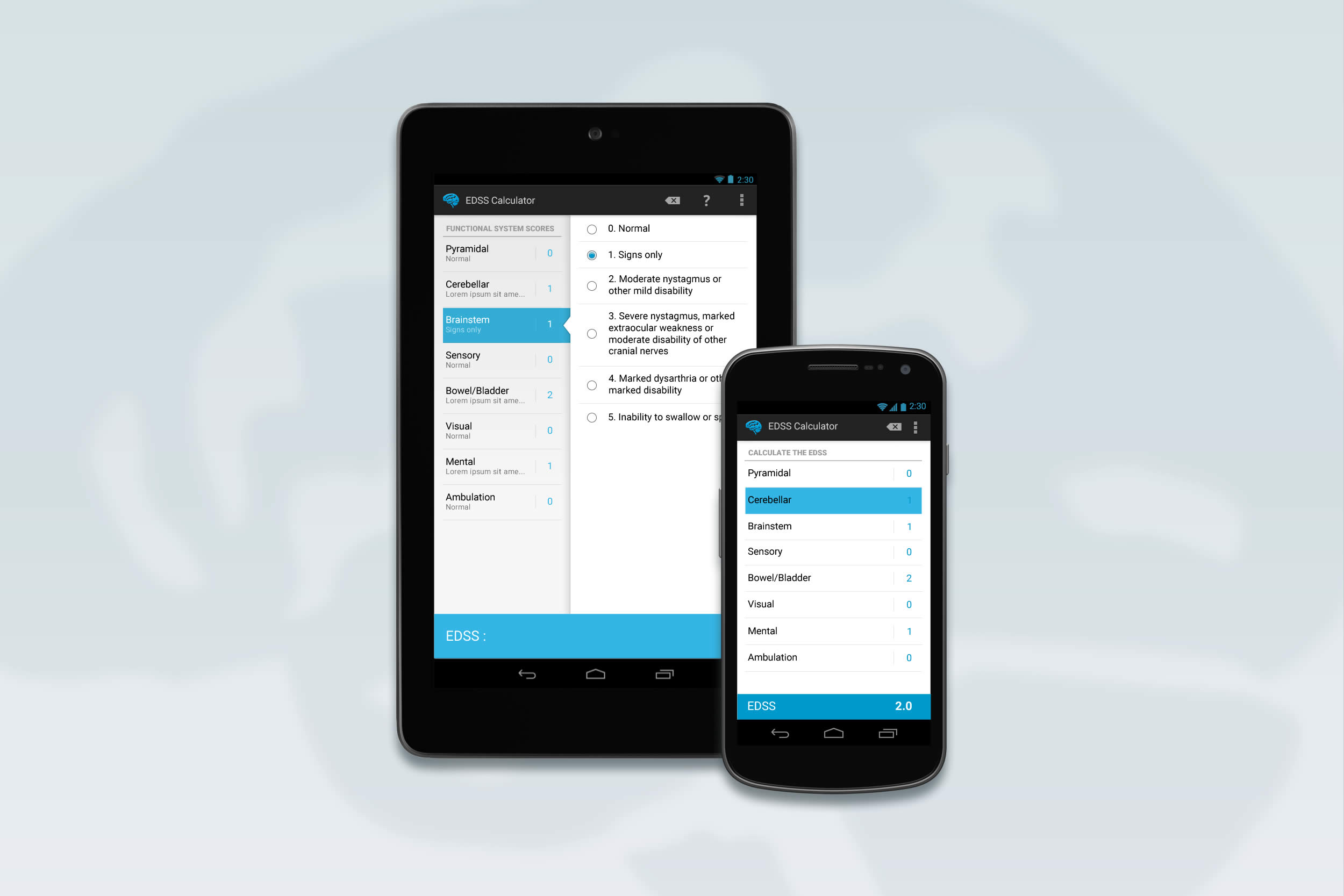 EDSS Calculator est une application pour smartphones et tablettes permettant aux médecins de calculer facilement l’EDSS (Expanded Disability Status Scale, ou degré d’incapacité physique) des patients atteints de sclérose en plaques.